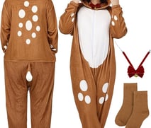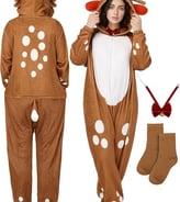 SOMSOC 3 Pcs Adult Christmas Reindeer Costume Deer Women Onesie Pajama Jumpsuit Animal Cosplay with Tie Socks for Unisex