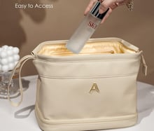 Bridesmaid Gift, Initial Makeup Bags, Personalized Double Layer Cosmetic Bag with Makeup Brush Organizer, Waterproof, Large Capacity